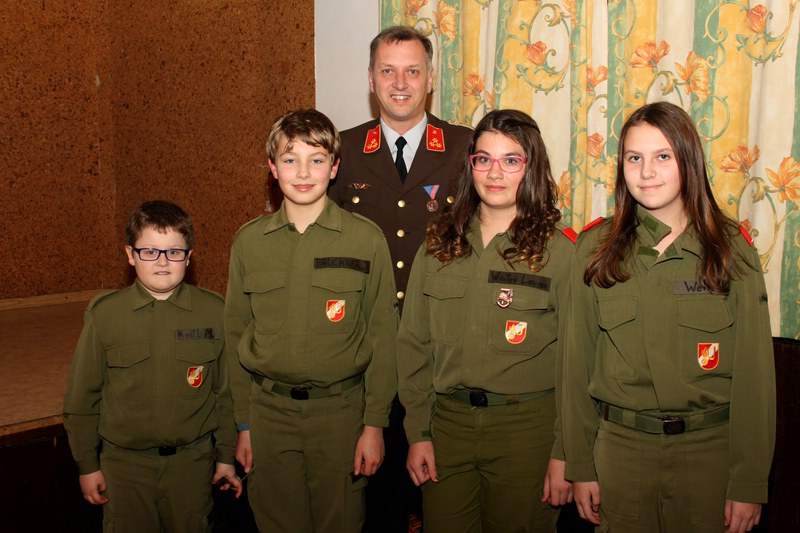 Die neuen Jugendmitglieder Jonathan Bruckner, Marcel Kastl, Kristina Weiß und Laura Winter wurden vorgestellt, und Kristina und Laura wurden nach erfolgreicher 1. Erprobung zum Jugendfeuerwehrmann angelobt.