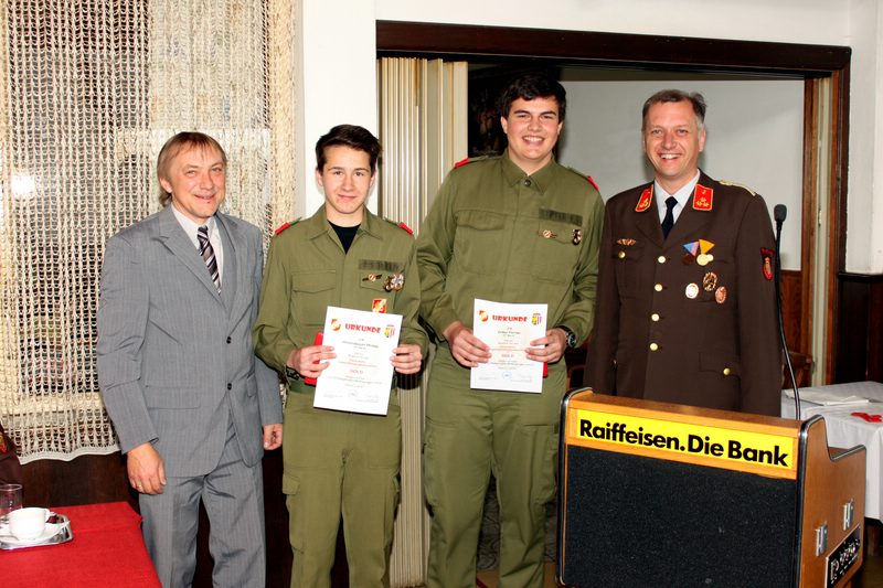 überreichen. Ihnen wurde zum Abschluß ihrer „Jugendkarriere“ das Jugendfeuerwehrleistungsabzeichen in Gold verliehen.