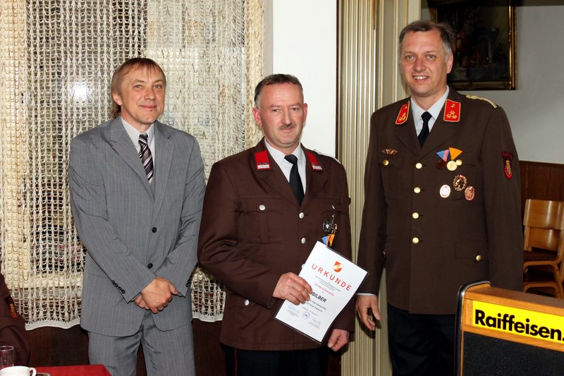 Last but not least durfte ich Pölz Gerhard die Bezirksfeuerwehrverdienstmedaille in Silber, für 20 maliges Antreten beim Landesbewerb, an die Brust heften.