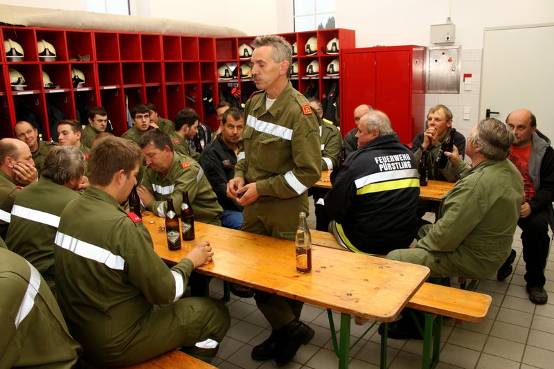 Nach erfolgreicher Bekämpfung fand die Übungsnachbesprechung im Feuerwehrhaus Pürstling statt.