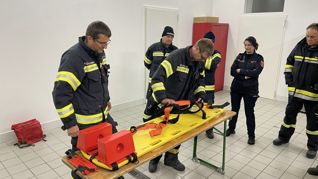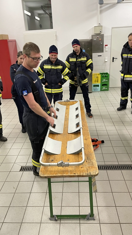 Von den Kameraden Clemens Schaufler und Klemens Kugler wurden uns Spineboard, Schaufeltrage und die Rettungsplattform bei unserer Monatsübung etwas näher gebracht.