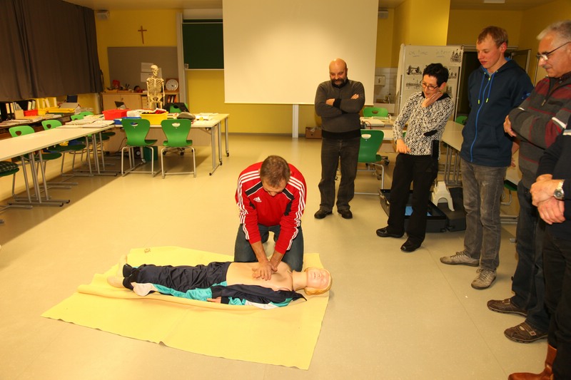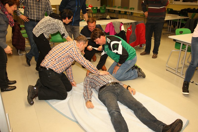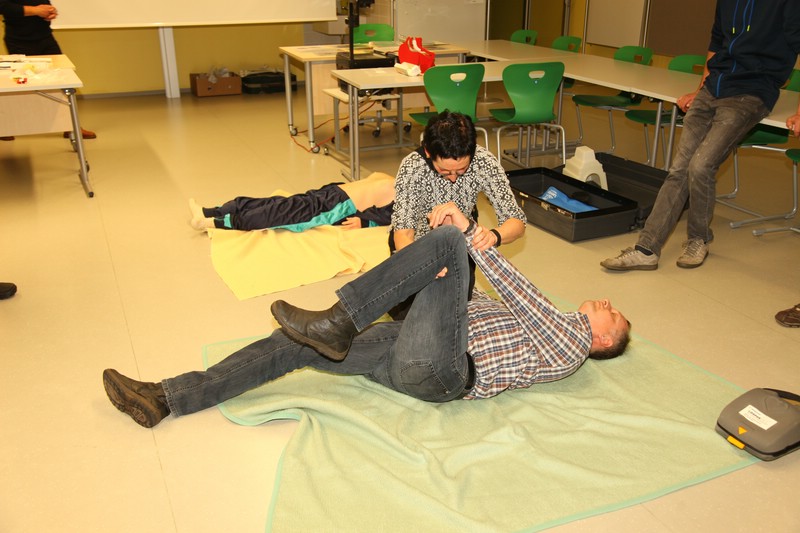 Beübt wurden von, der Herzmassage über Beatmung, Rautegriff, Heilmanngriff bis hin zur richtigen Lagerung, alle interessanten Thema rund um Erste Hilfe.